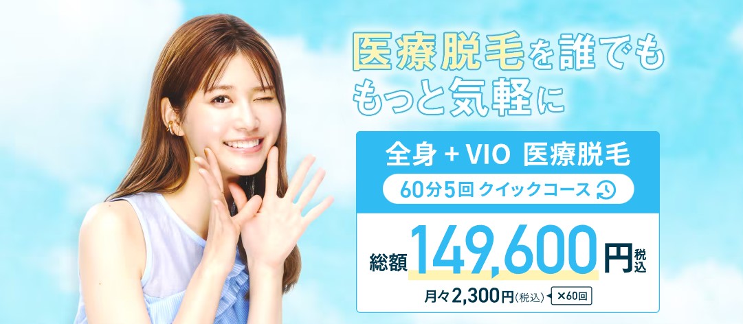 | 全身医療脱毛クイック(全身のみ) | 1,600円(税込) 3回 総額:69,800円 |
