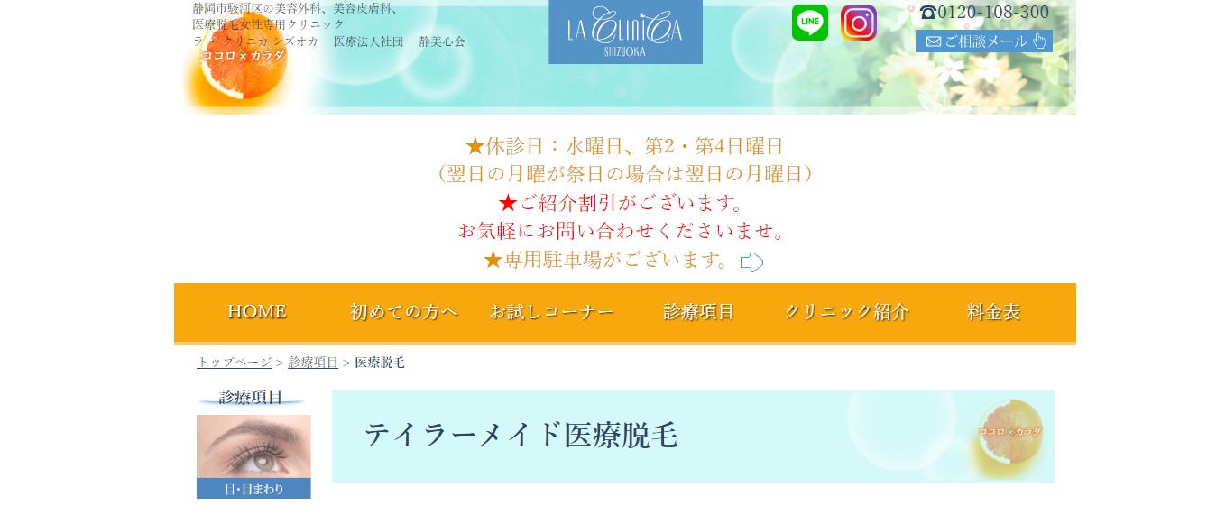 ラ・クリニカシズオカの医療脱毛は、平日限定プランがあります。そのため、少しでも安い値段で医療脱毛を受けたい方に人気のプランです。