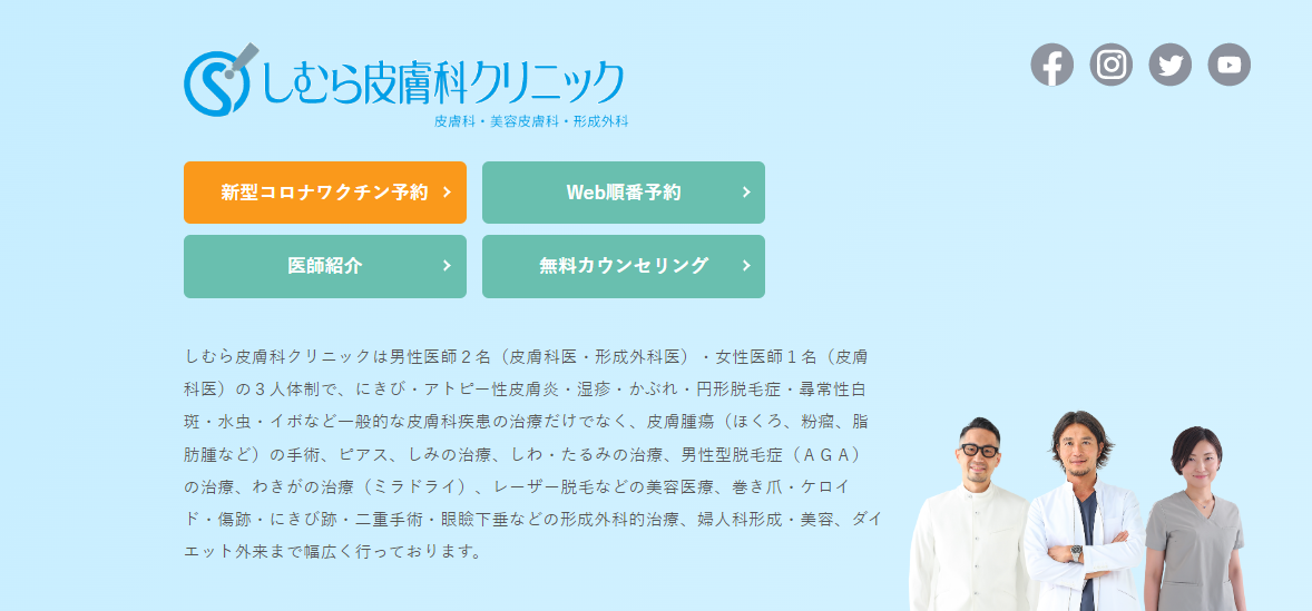 しむら皮膚科クリニックでは土曜日の診療も行っているため平日に忙しい方などに評判がよくなっているクリニックです。