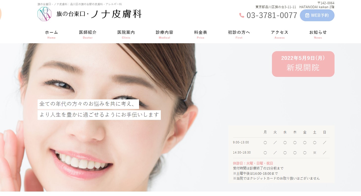 | クリニック名 | 旗の台東口・ノナ皮膚科 |