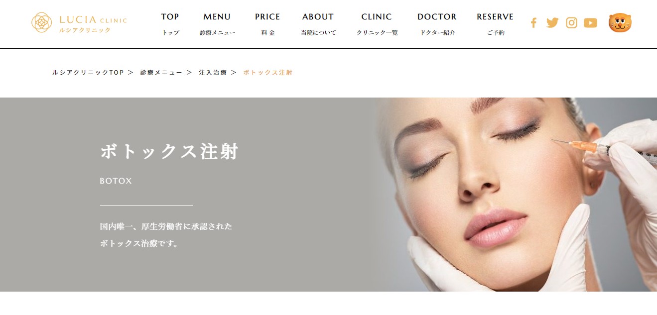 ルシアクリニックで扱うボトックスは、厚生労働省承認のボトックスビスタとKFDAから認可されているボツラックスです。顔の注入はボトックスビスタで、体への注入はボトックスビスタまたはボツラックスで行っています。