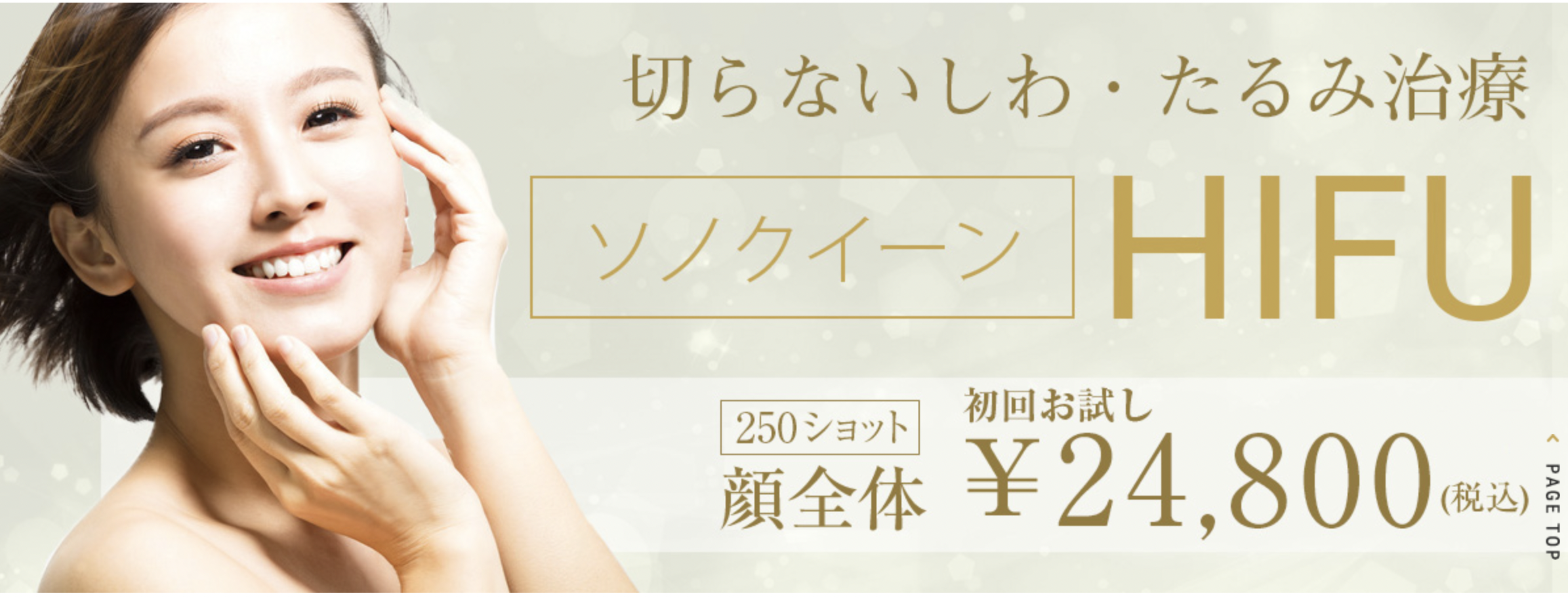 エミナルクリニックは、初回のハイフお試し料金が安いのが特徴。医療ハイフの初回お試し100ショットが、9,800円(税込)で受けられます。