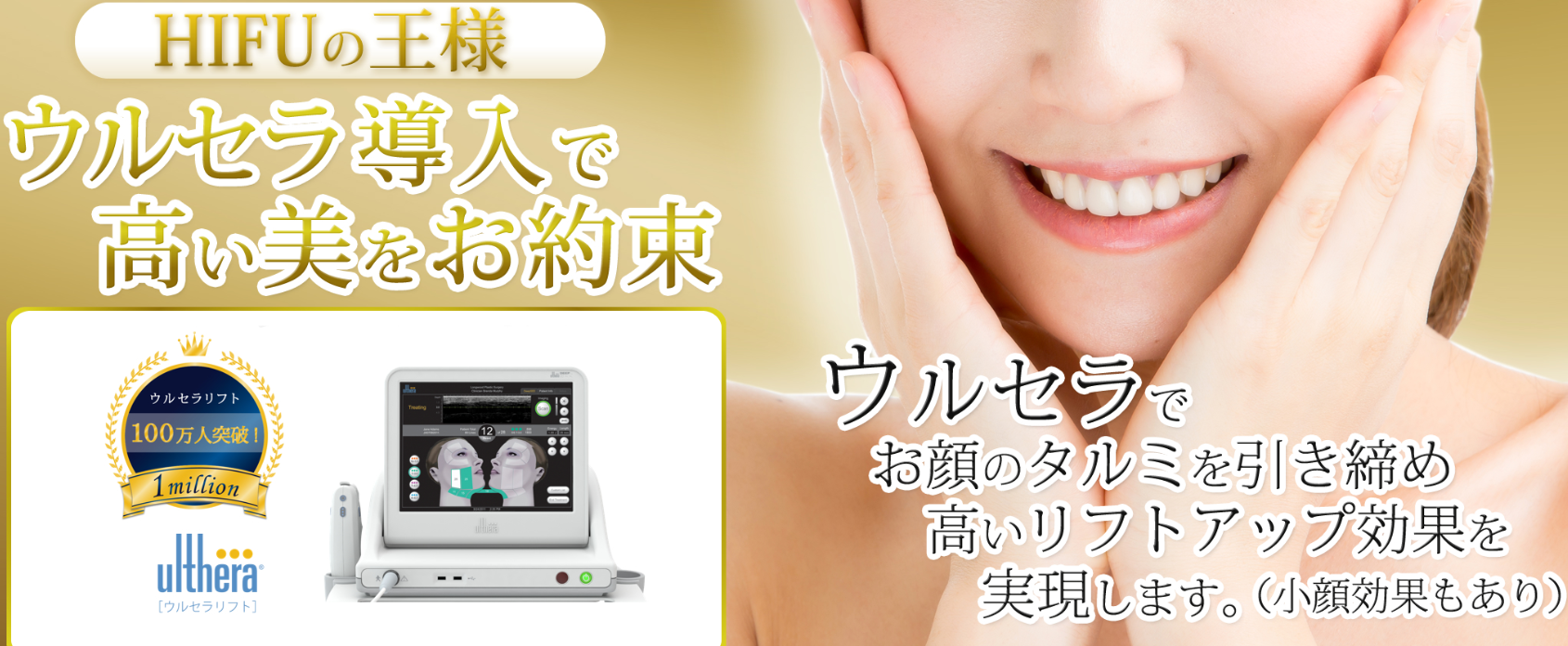 リフテラVという超音波とVIORA STというラジオ波のコンビネーションによる治療でリフトアップ、シワの改善、肌のハリ、たるみに高い効果があります。