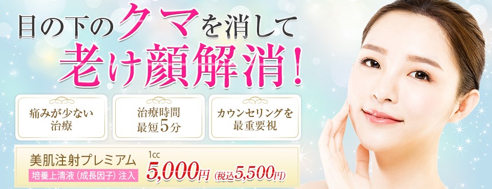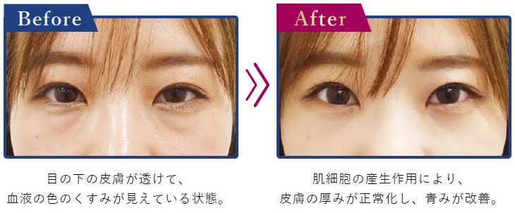 自身の血液を採取し、医療機械で血小板のみを取り出して注入する治療法。クマに注入し皮膚再生を促すことで、青クマや黒クマが改善できます。[/box]