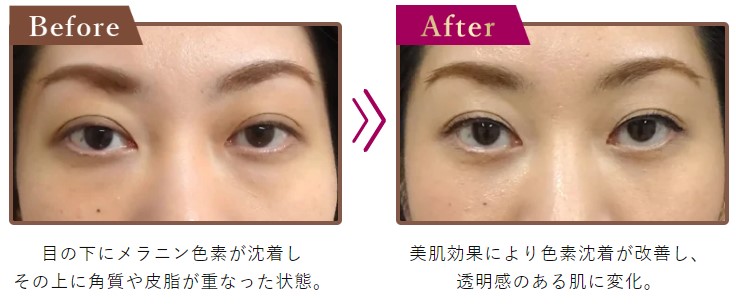 色素沈着によってできる茶クマの改善には、肌に優しい光治療やレーザートーニングなどが良いでしょう。どちらの施術も、メラニンの排出促進や、生成を抑制するのに効果的です。[/box]