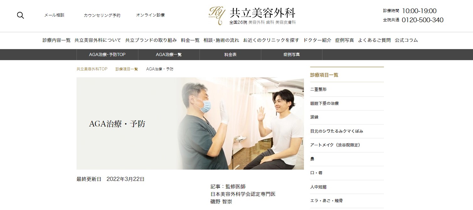 共立美容外科渋谷院は全国に26院展開している大手美容外科です。AGA治療においても美容外科ならではの治療が魅力的です。明確な価格とわかりやすい治療説明のクリニックです。