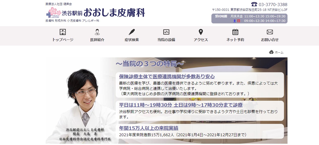 おおしま皮膚科は予約をせずにAGA治療を受けれるクリニックです。一般クリニックですので伺いやすいです。土日も営業しており、休日を利用したクリニック通いも可能です。自身のペースで通えます。