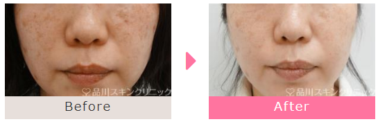医療用レーザーを弱いパワーで照射し、シミや肝斑の原因であるメラニン色素を徐々に減少させる治療法です。シミやそばかす、肝斑の除去に効果が期待できます。