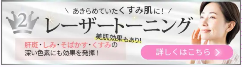 [box class=”box28″ title=”レーザートーニングの特徴”]弱いパワーでシミや肝斑に照射し、メラニンを徐々に減少させるシミ取りレーザーです。強いレーザーとは違い、かさぶたになりにくいため、ダウンタイムも短くなります。