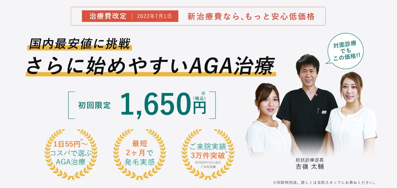 イースト駅前クリニック横浜院では、AGA治療を継続しやすいコスパの良さが魅力的なクリニックです。月々1650円〜と自己負担額を下げて施術することができます。