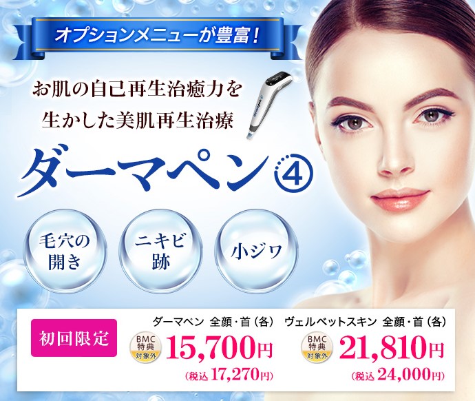 詳細:ダーマペン4:極細針で肌に微細な穴を形成し有効成分を浸透させる施術。