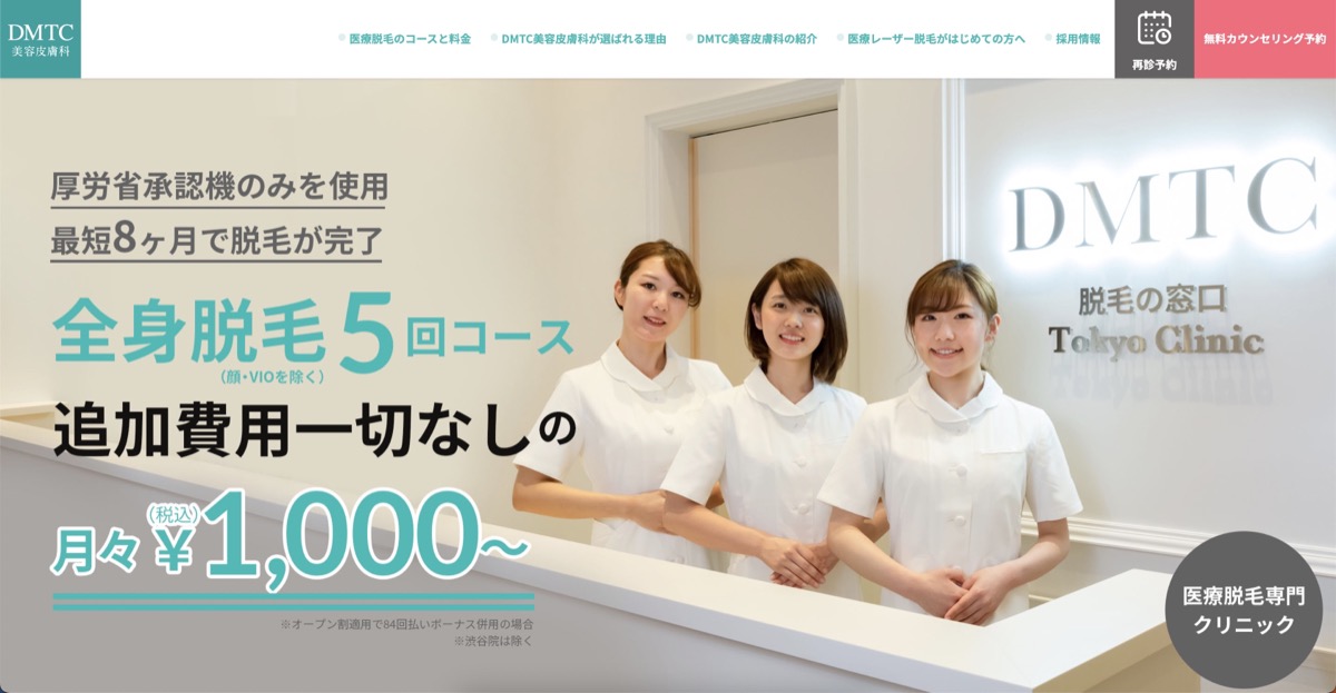 DMTC 脱毛の窓口は、リーズナブルな価格で医療脱毛を受けられるのが特徴です。割引も用意されているので、費用を抑えて顔脱毛したい方におすすめです。