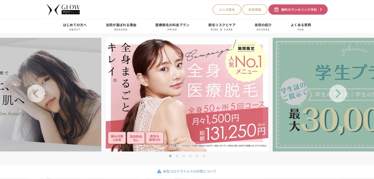 顔を照射するとなるとトラブルが気になる方は多いのではないでしょうか。グロウクリニックでは、医療脱毛による肌トラブルには無料で対応してくれます。