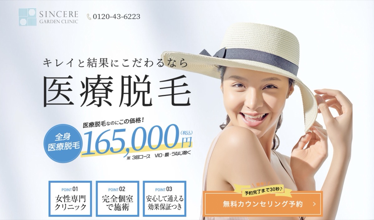 シンシアガーデンクリニックでは、カウンセリングを重視した医療脱毛を行っています。医師によるカウンセリングで、不安なことや気になることをじっくりと相談することができますよ。