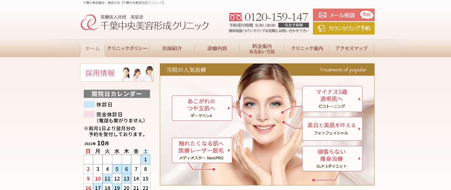 千葉中央美容形成クリニック千葉院の人気施術と料金