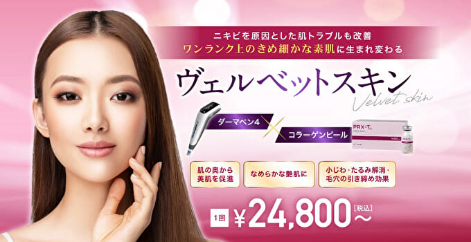 ヴェルベットスキンとは、「ダーマペン」と「マッサージピール」を組み合わせたメニューのこと。
