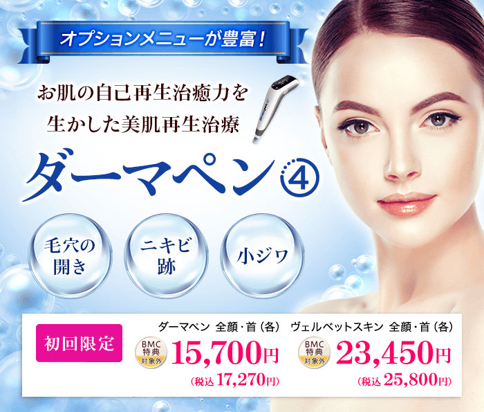 | オプション | ◎ +4,950円〜 美肌ホワイト美容成分/ボツリヌス・トキシン/プレミアム PRP血小板療法 など |