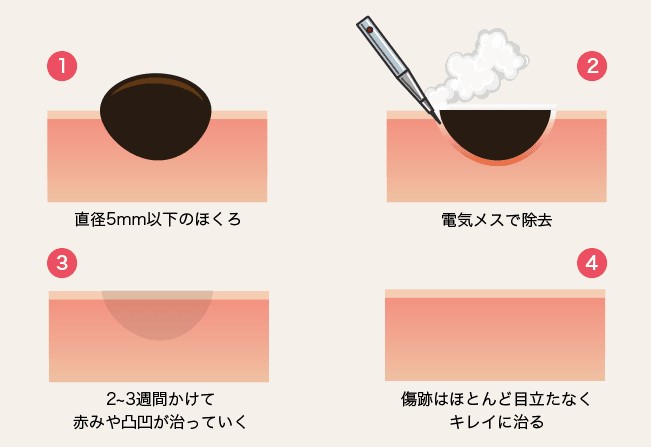 引用:ほくろ除去はレーザー以外にも治療法がある?電気メスの特徴を解説!|シナガワビューティナビ