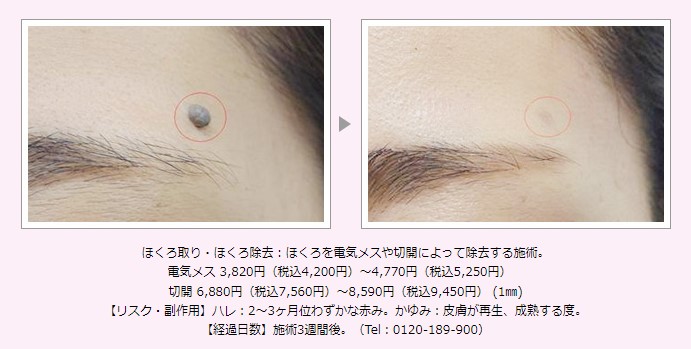 参考:ほくろ取り・ほくろ除去(電気メス・切開)。ほくろ・いぼ除去のレーザー治療なら品川美容外科