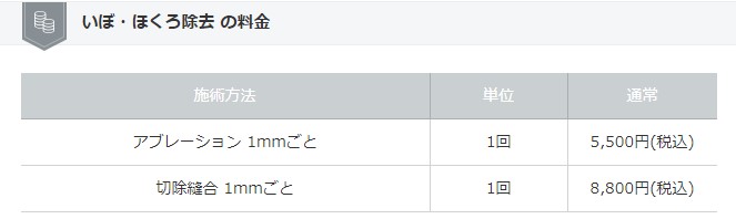 多くは1mmでいくらと掲載しているところもありますが、ほくろ1個に対しての値段を決めているクリニックもあります。[/box]