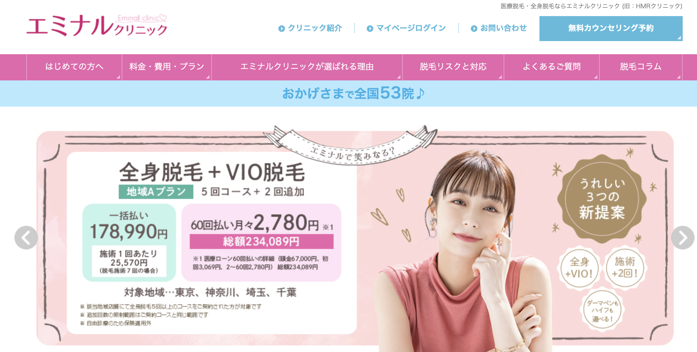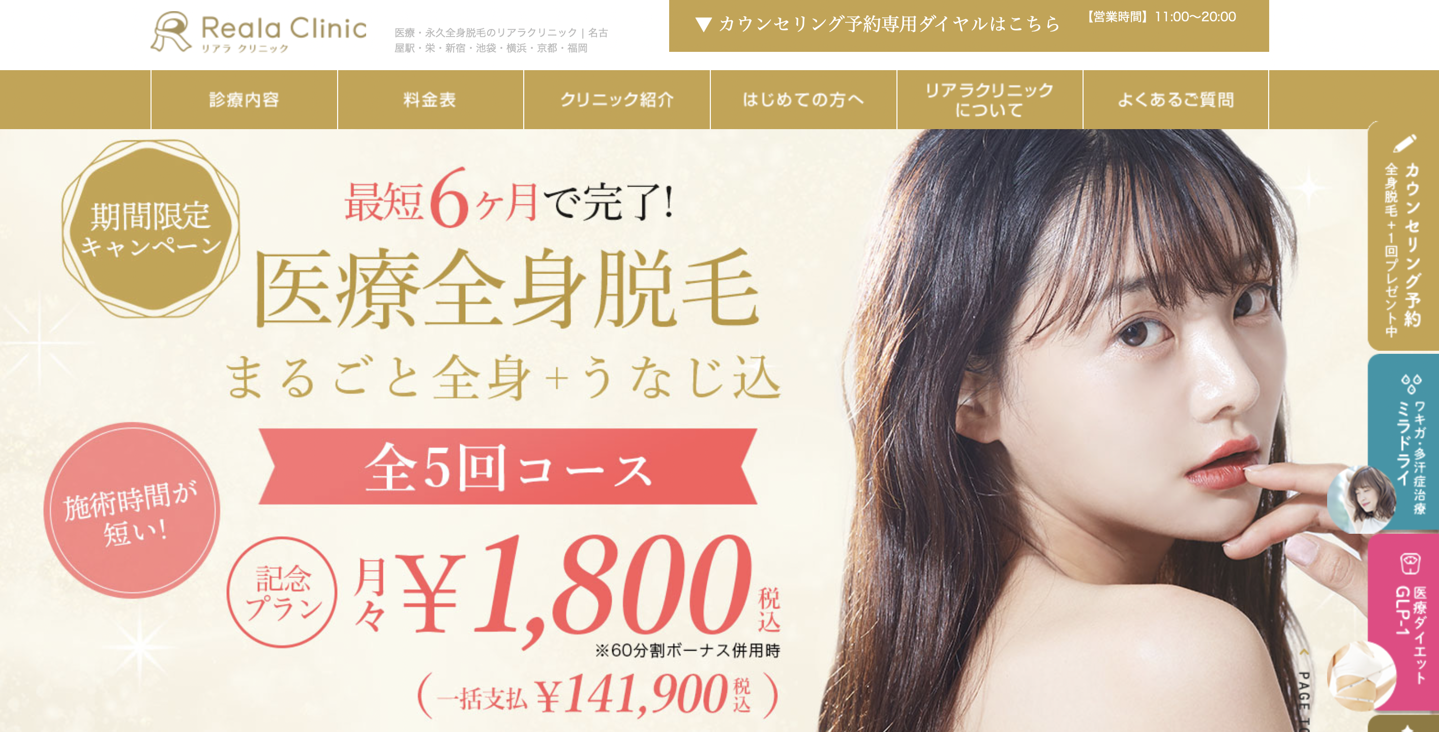リアラクリニックの全身脱毛情報