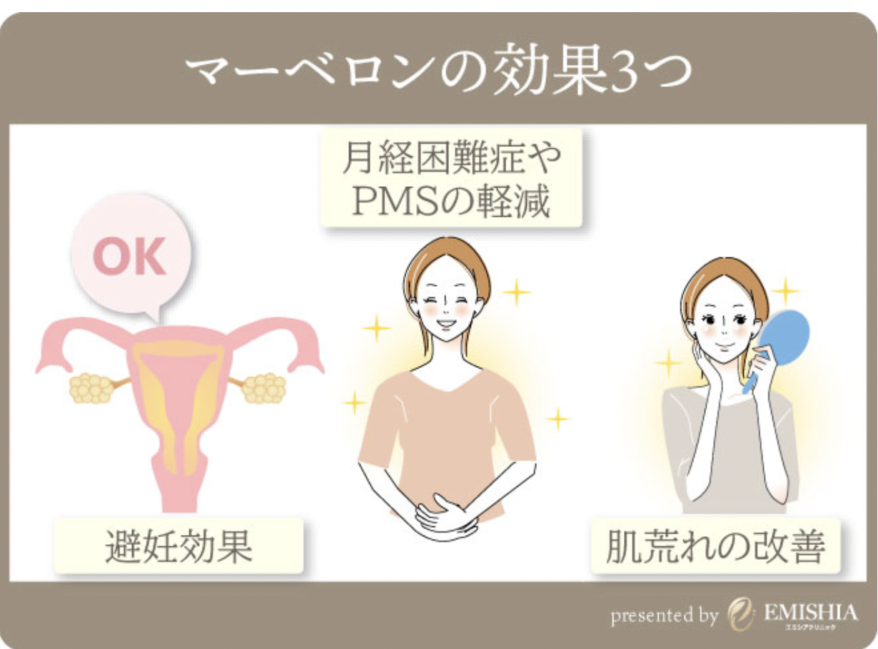 マーベロンを服用することによって得られる効果は主に3つあります。