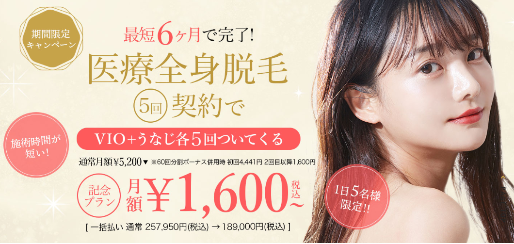 | まるごと全身脱毛5回プラン(税込) | 132,000円〜 |