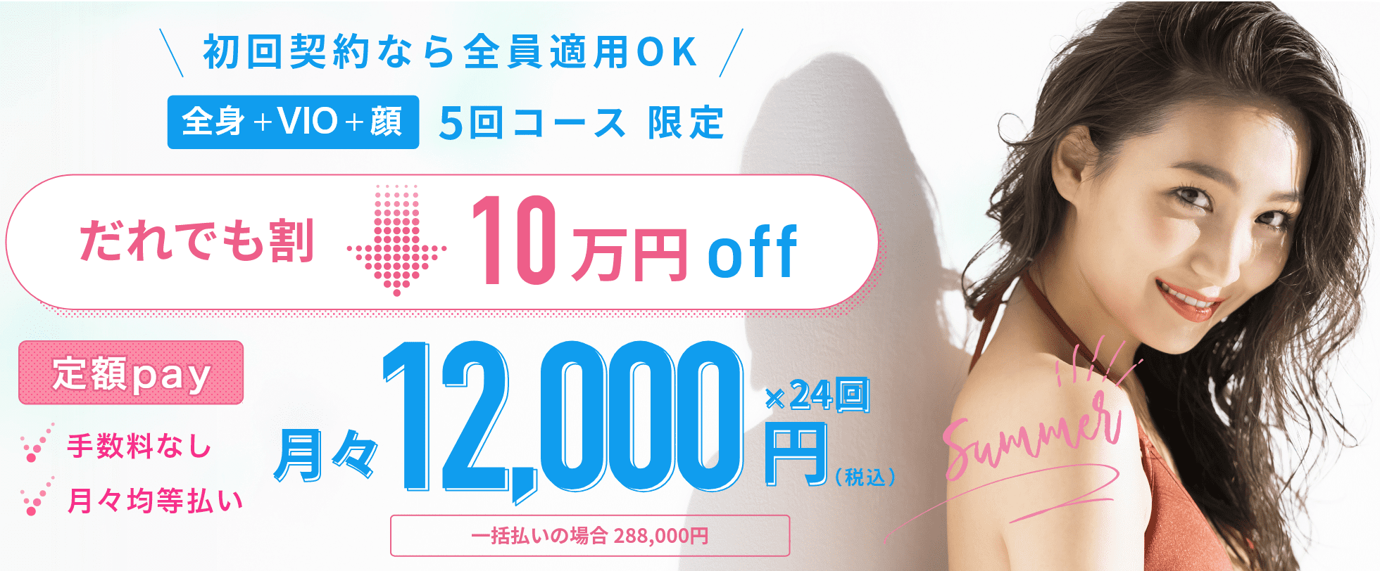| 全身脱毛+VIO+顔・6回(税込) | 244,000円〜 |