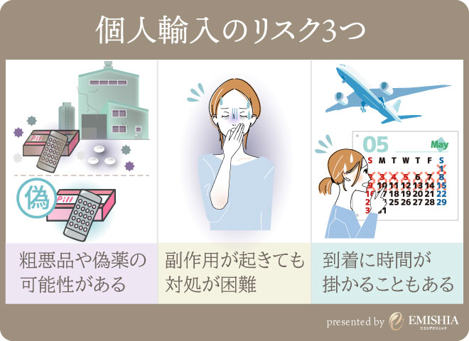 - 粗悪品や偽薬が届く可能性がある