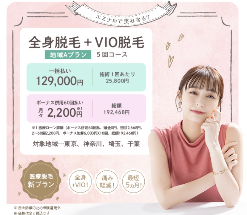 | 全身+VIO脱毛5回+顔5回 | 149,000円(税込) |