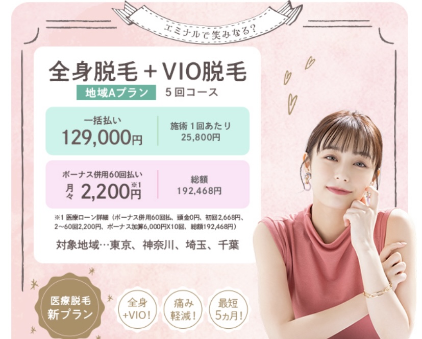 | 全身+VIO脱毛5回 | 192,000円(税込) |