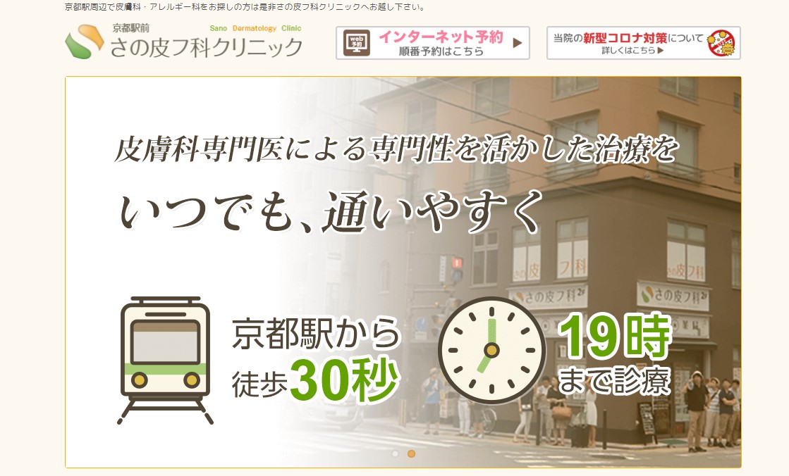 さの皮フ科クリニックは京都駅京都タワー側A3出口から徒歩30秒にある立地の良いクリニックです。