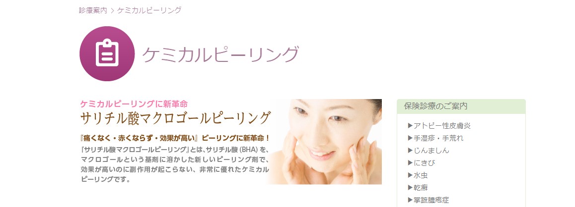 平岡皮膚科スキンケアクリニックには、30%サリチル酸マクロゴール・ミルクピール・マッサージピールの3種類から施術を選べます。