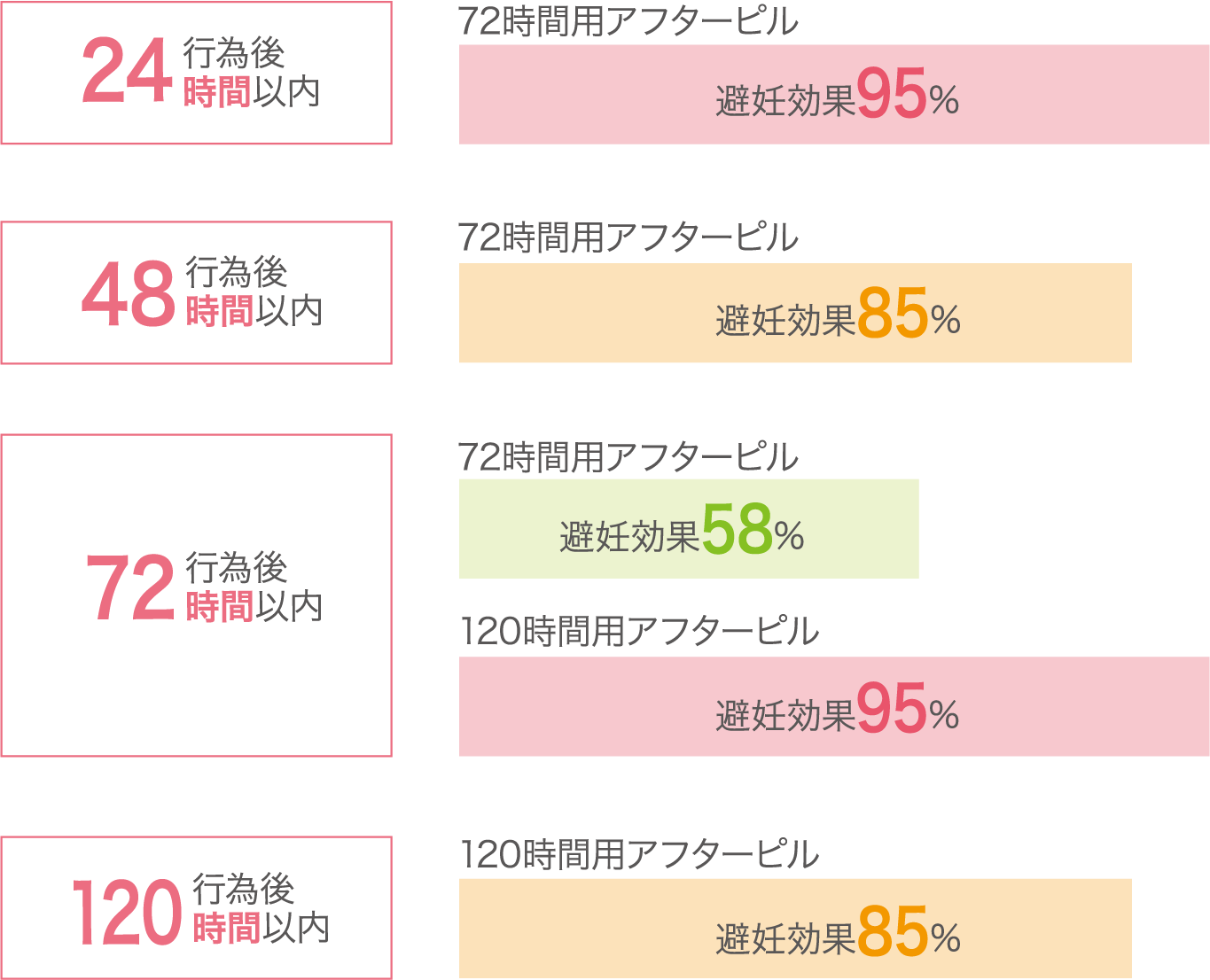 アフターピルを服用する場合は、なるべく早く医師に診察をしてもらって薬を飲むことが、避妊の確率を高めるポイントです。「避妊できていなかったかも」と思ったら、まずは医師の診察を受けるようにしましょう。