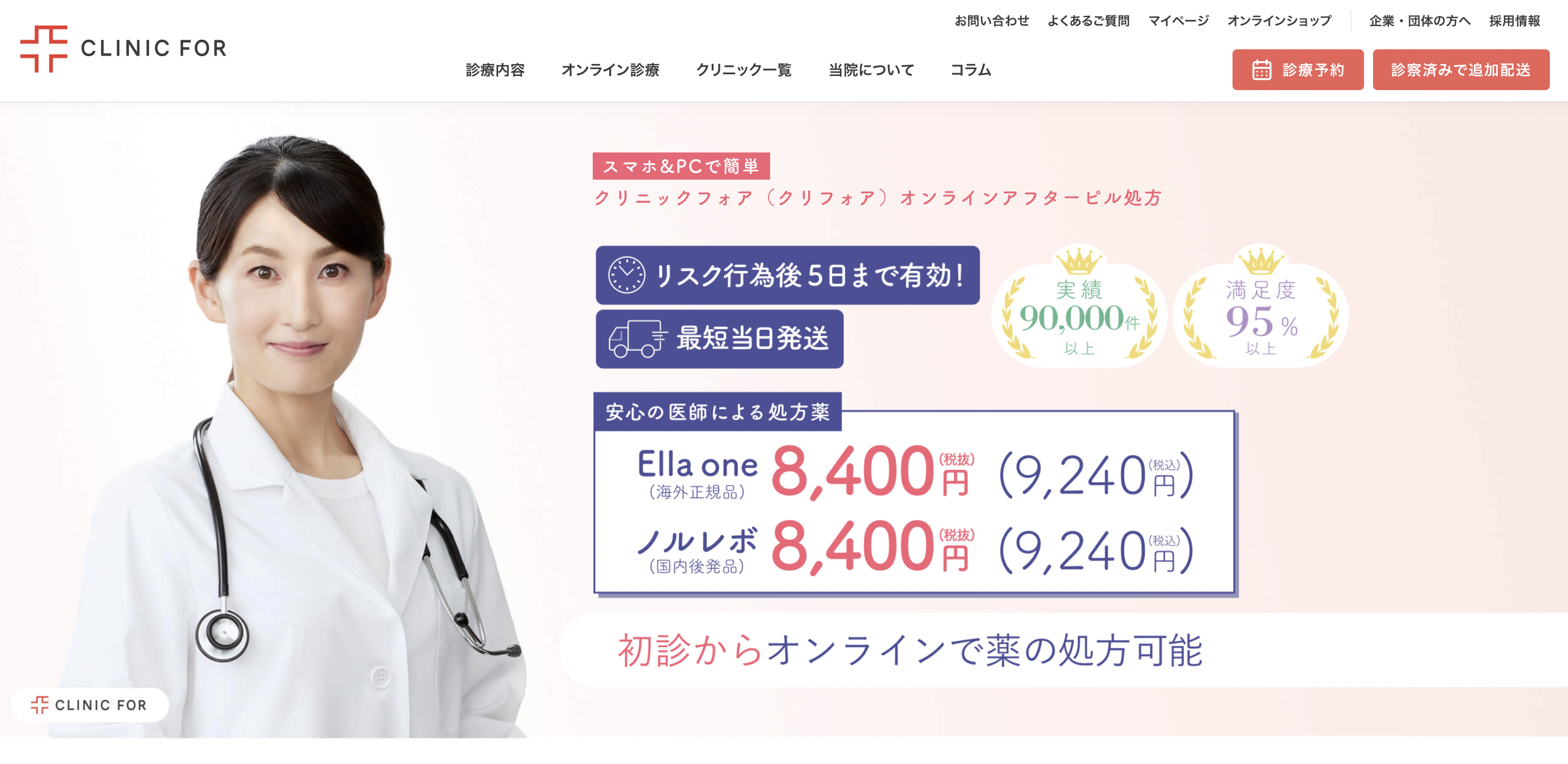 クリニックフォアでは、リスク行為後5日まで有効なアフターピルを取り扱っています。なかなか医師の診察を受けれない人や、一般のクリニックに来院する時間がない人もオンラインで処方してもらえます。