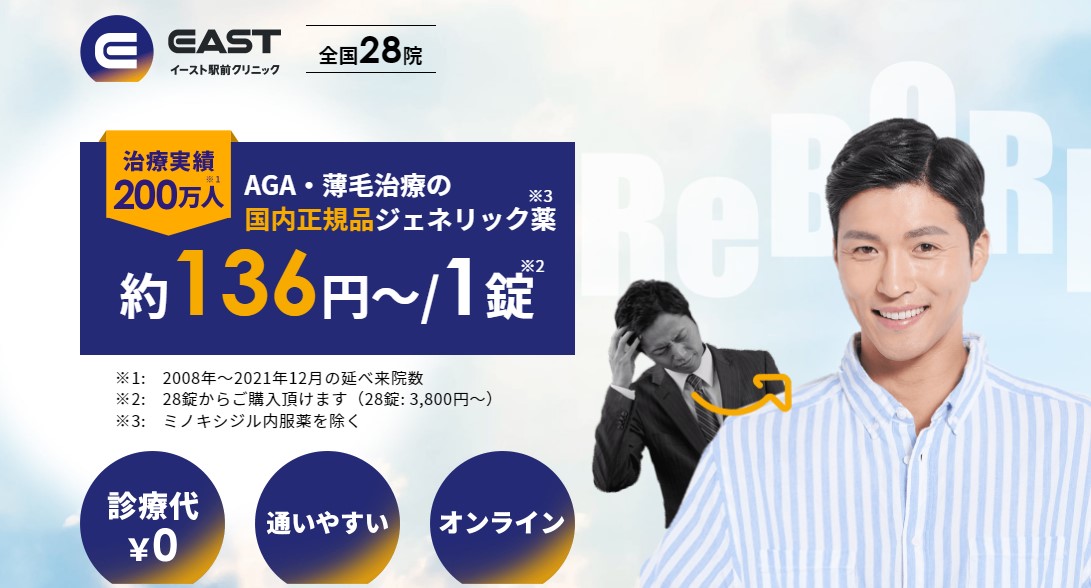イースト駅前クリニックは、予約不要で来院可能です。通常10~20分程度で処方が可能なので、忙しい人も安心。初診の人は、公式HPから予約して来院するとスムーズです。