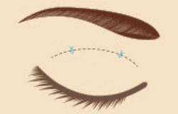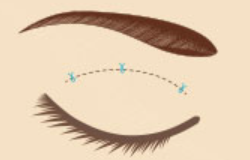 希望の二重ができる折れ込み部分で、瞼の裏側から皮膚表面に太めの絹糸を貫通させて皮膚保護のためにビーズを通し縫合します。1週間後に抜糸します。絹糸の周囲に生成される自己コラーゲン線維が自然で長期持続する二重ラインを形成します。