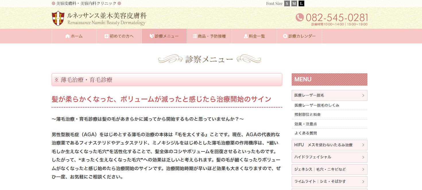 AGAスキンクリニック広島院のメニュー