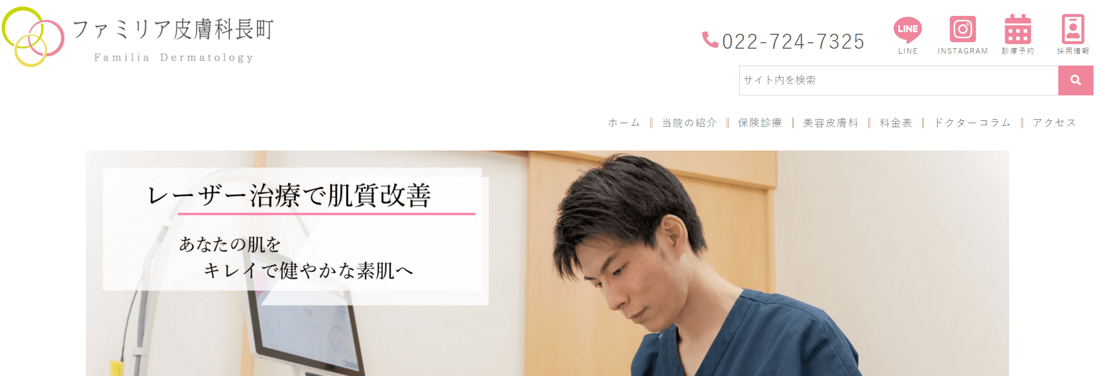 ファミリア皮膚科長町では、フランクショナル炭酸ガスレーザーCO2RE(コア)を導入しています。患者さんの希望や症状に合わせたダウンタイムの少ない治療が特徴です。