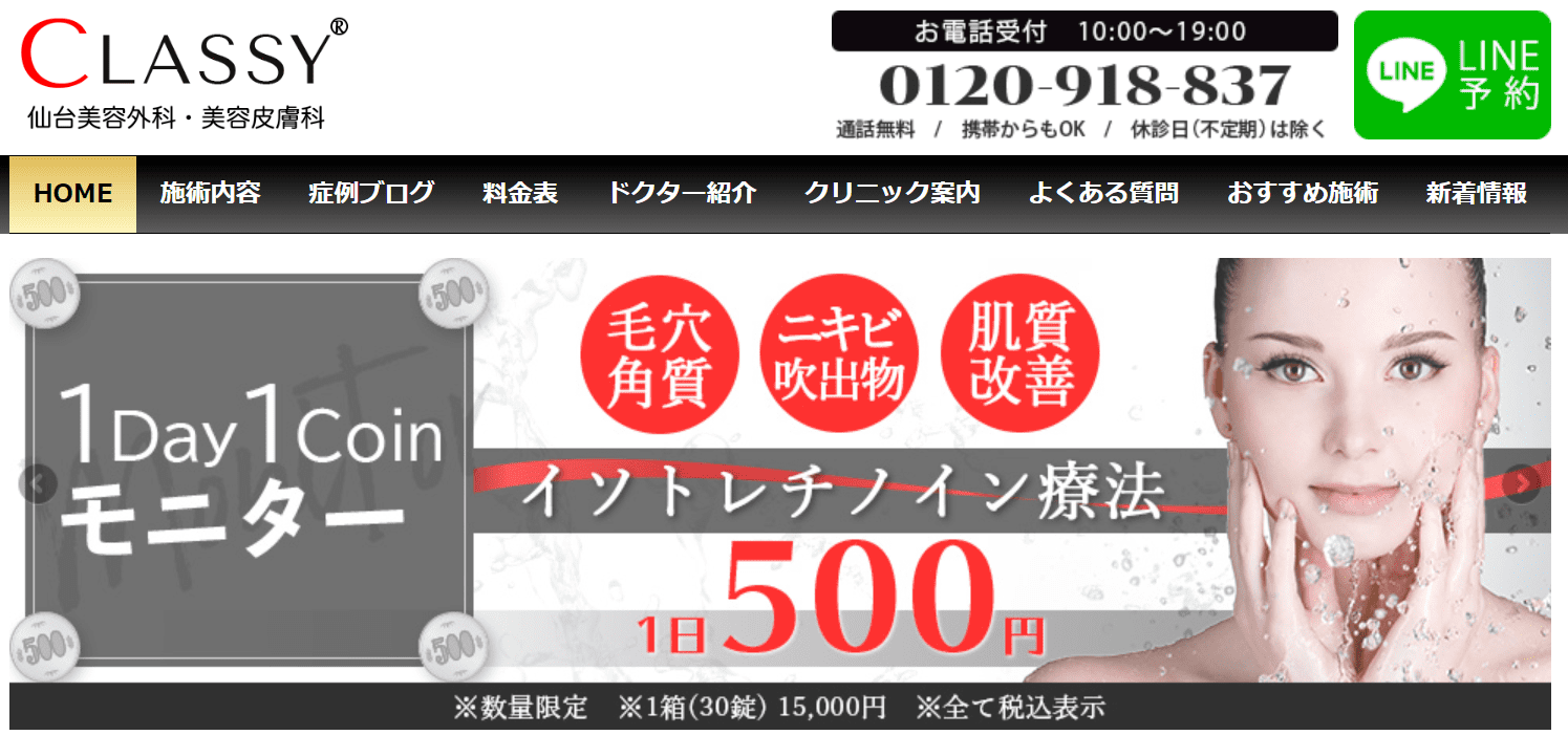 | クリニック名 | CLASSY仙台美容外科・美容皮膚科 |