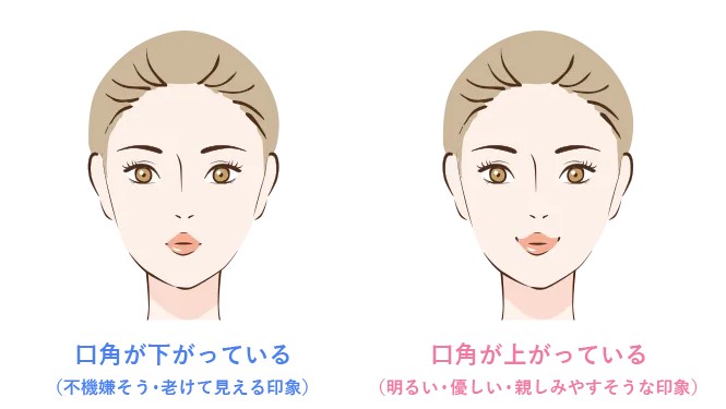 口角が下がっていると不機嫌そうに見え、年齢とともに口角が下がるため老けて見えることがあるでしょう。