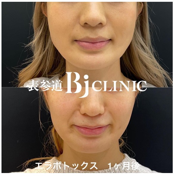 詳細:エラボトックス治療1ヶ月後の状態です。左右合計80単位注入しています。両方とも咬筋に力を入れてもらった状態です。周囲から小顔になったと言われる様になったと喜んで下さいました。ボトックスでも人気のメニューになります。