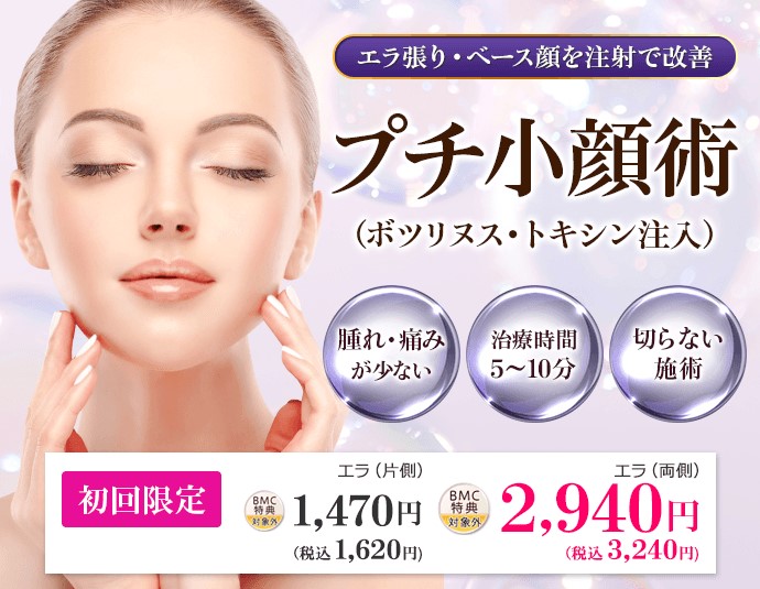 料金:【ボトックスビスタ】エラ ¥19,800、エラ倍量 ¥39,600、【ボツラックス】エラ ¥10,780円